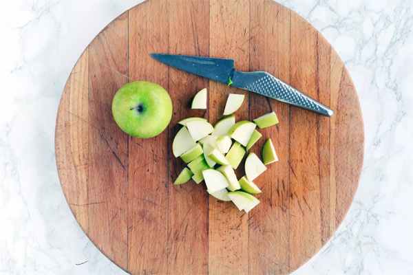 Bước 5: Khi món salad của bạn đã sẵn sàng, hãy cắt táo thành các miếng nhỏ, bỏ lõi.