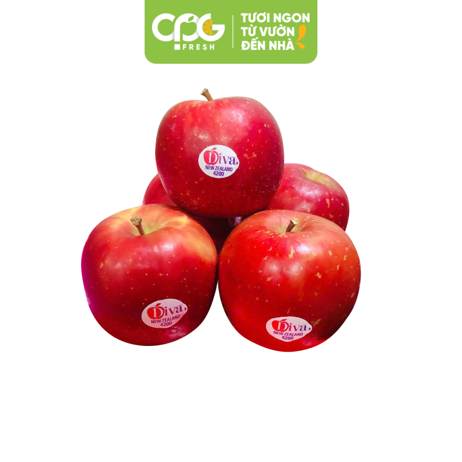 - Táo Diva New Zealand vỏ màu đỏ sẫm pha cam hoặc vàng, bóng đẹp, thường có những vệt sọc nhẹ.